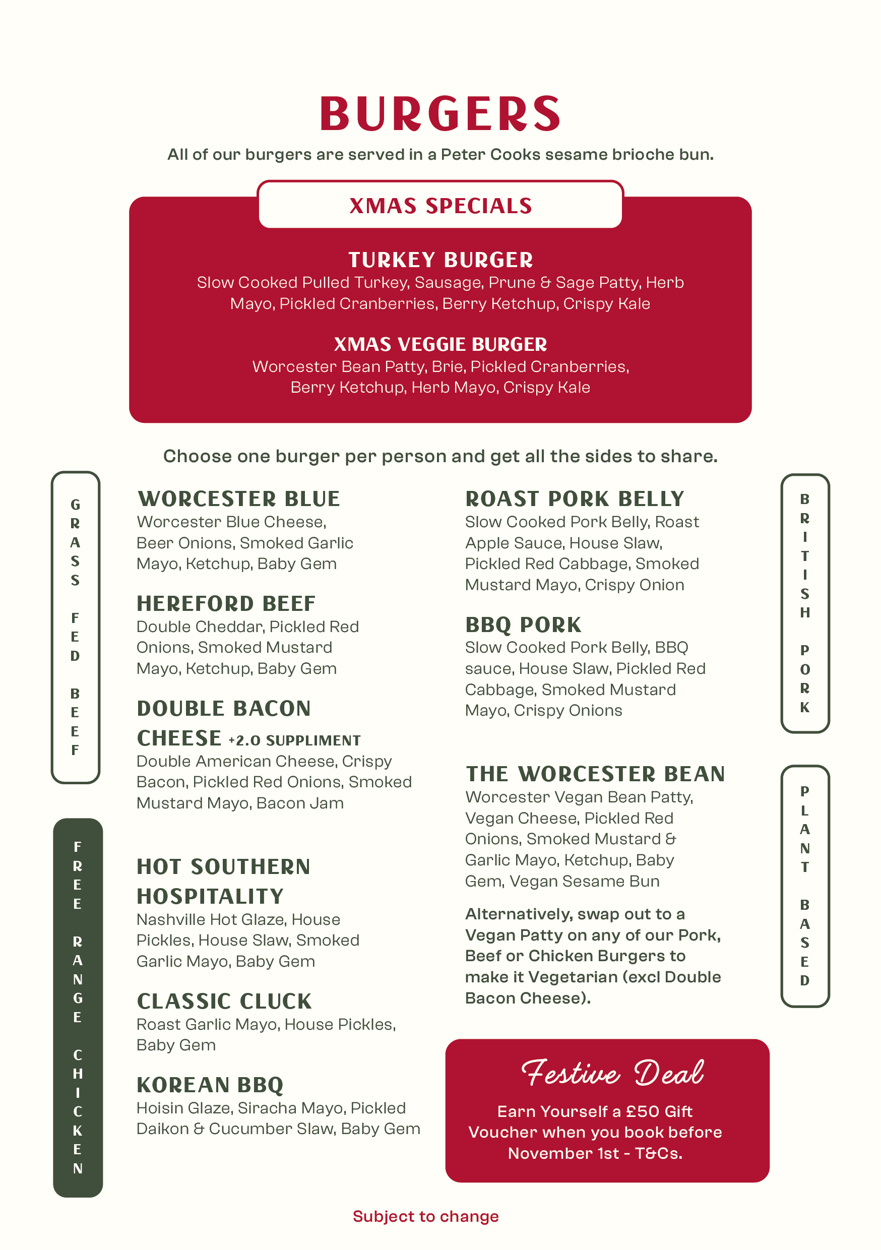 Feeling extra? Good. Add bacon or double cheese and make it your own. This is a classic burger, Hereford style. No messing about.